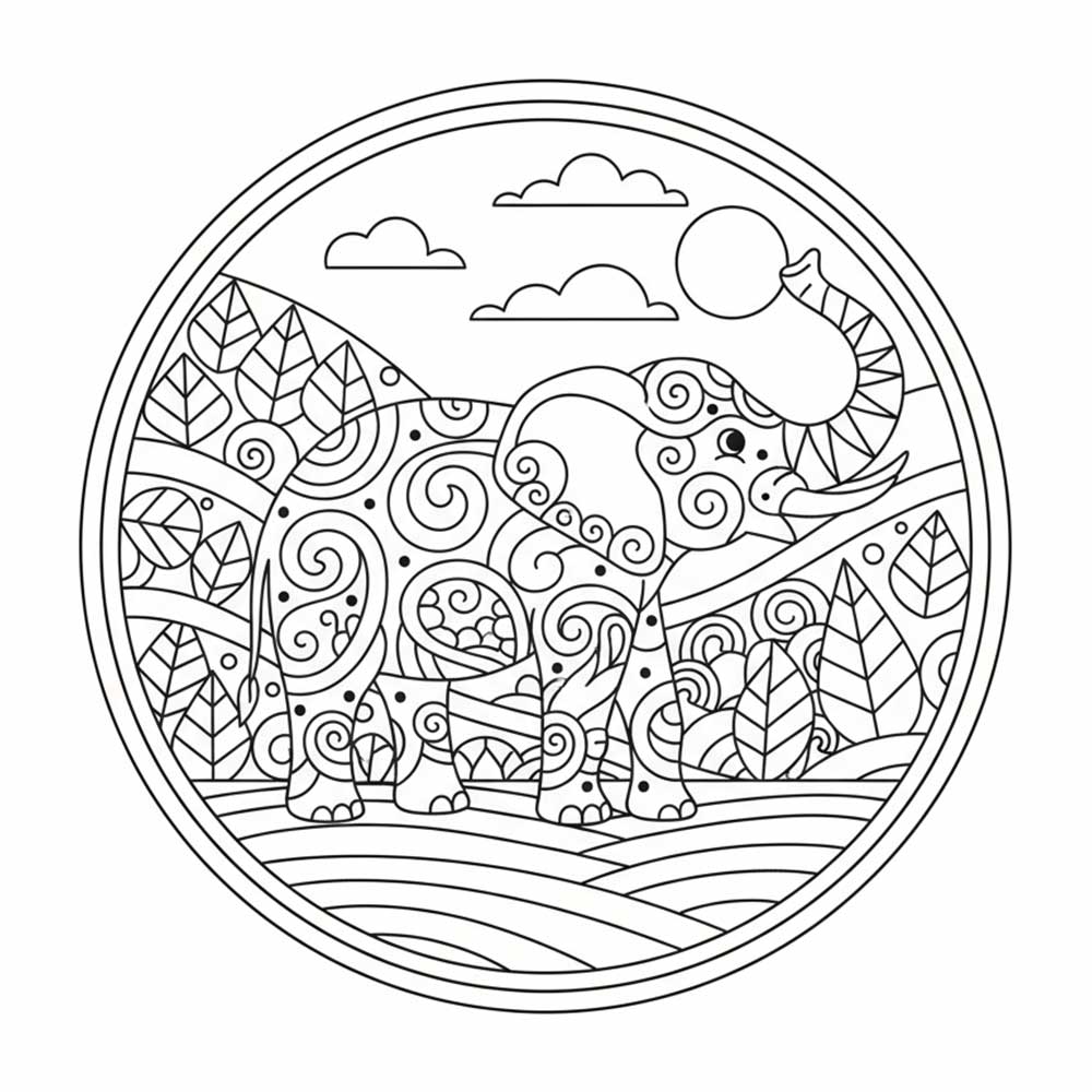 象の塗り絵 無料ダウンロード(動物|No.12)