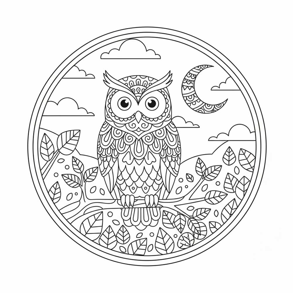 フクロウの塗り絵 無料ダウンロード(動物|No.14)