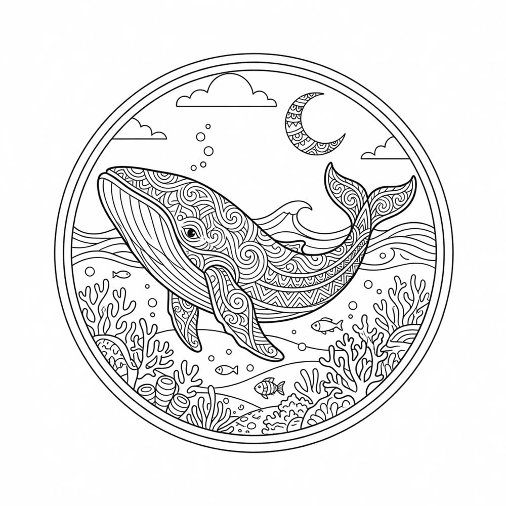 くじらの塗り絵 無料ダウンロード(動物|No.15)