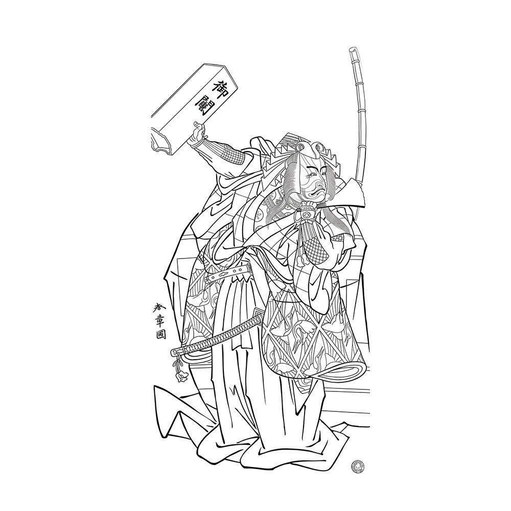勝川春章「五代目市川團十郎の暫」無料塗り絵|役者絵(No.05) Katsukawa Shunsho: Ichikawa Danjuro V in a Shibaraku Role – Free Coloring Page