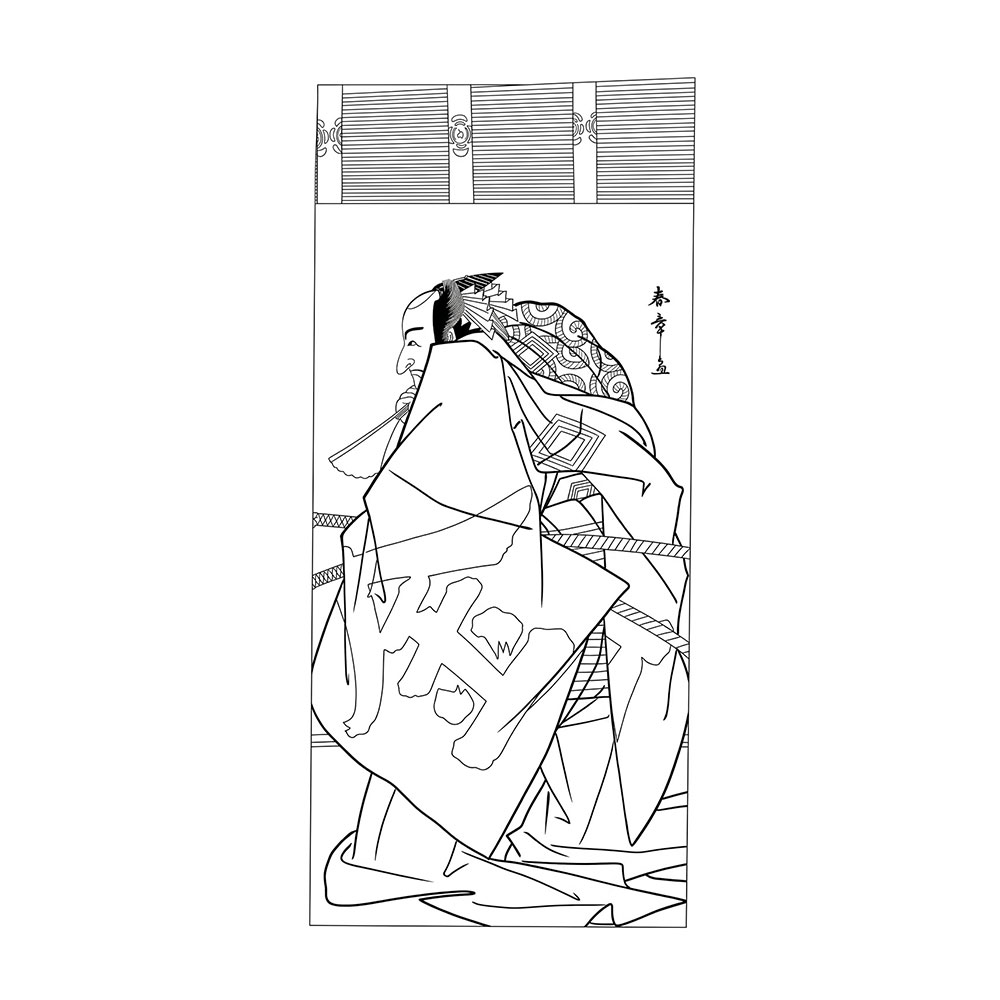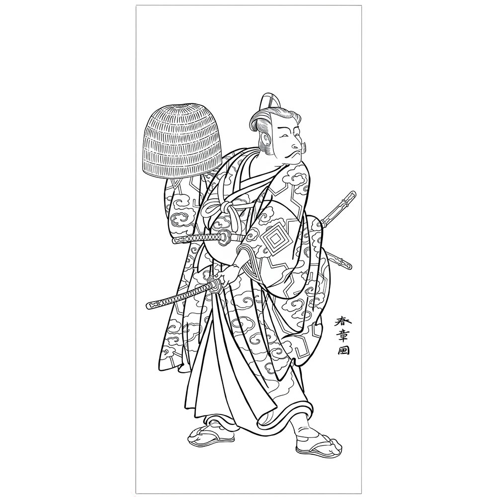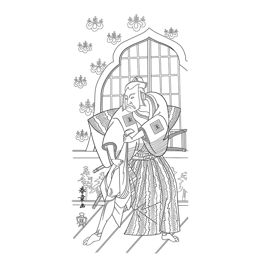 勝川春章「初代坂東三津五郎」無料塗り絵|役者絵(No.08) Katsukawa Shunsho: Bando Mitsugoro I – Free Coloring Page
