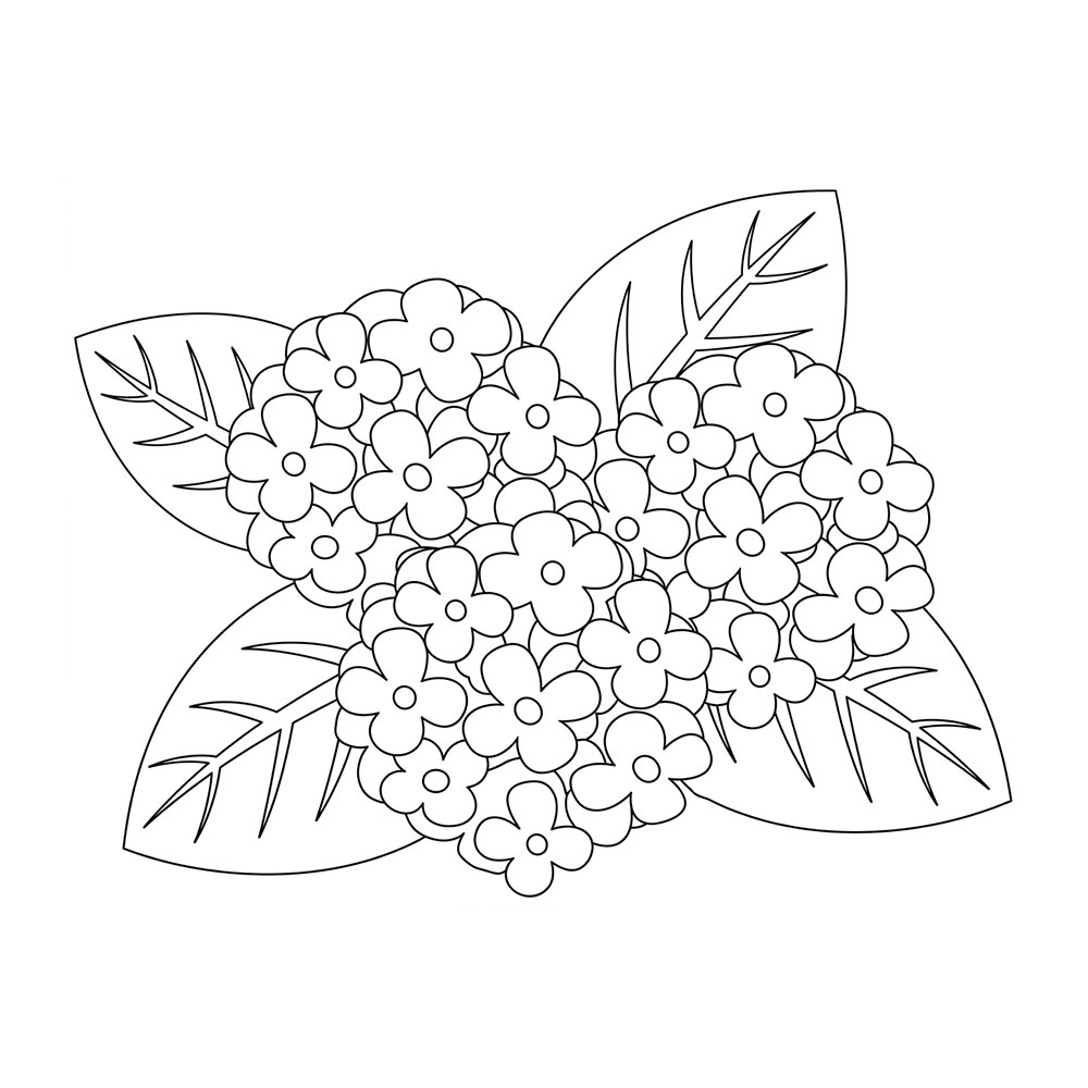 シンプルな線で描かれたあじさいの塗り絵です。塗りやすく仕上がりもきれいな一枚です。